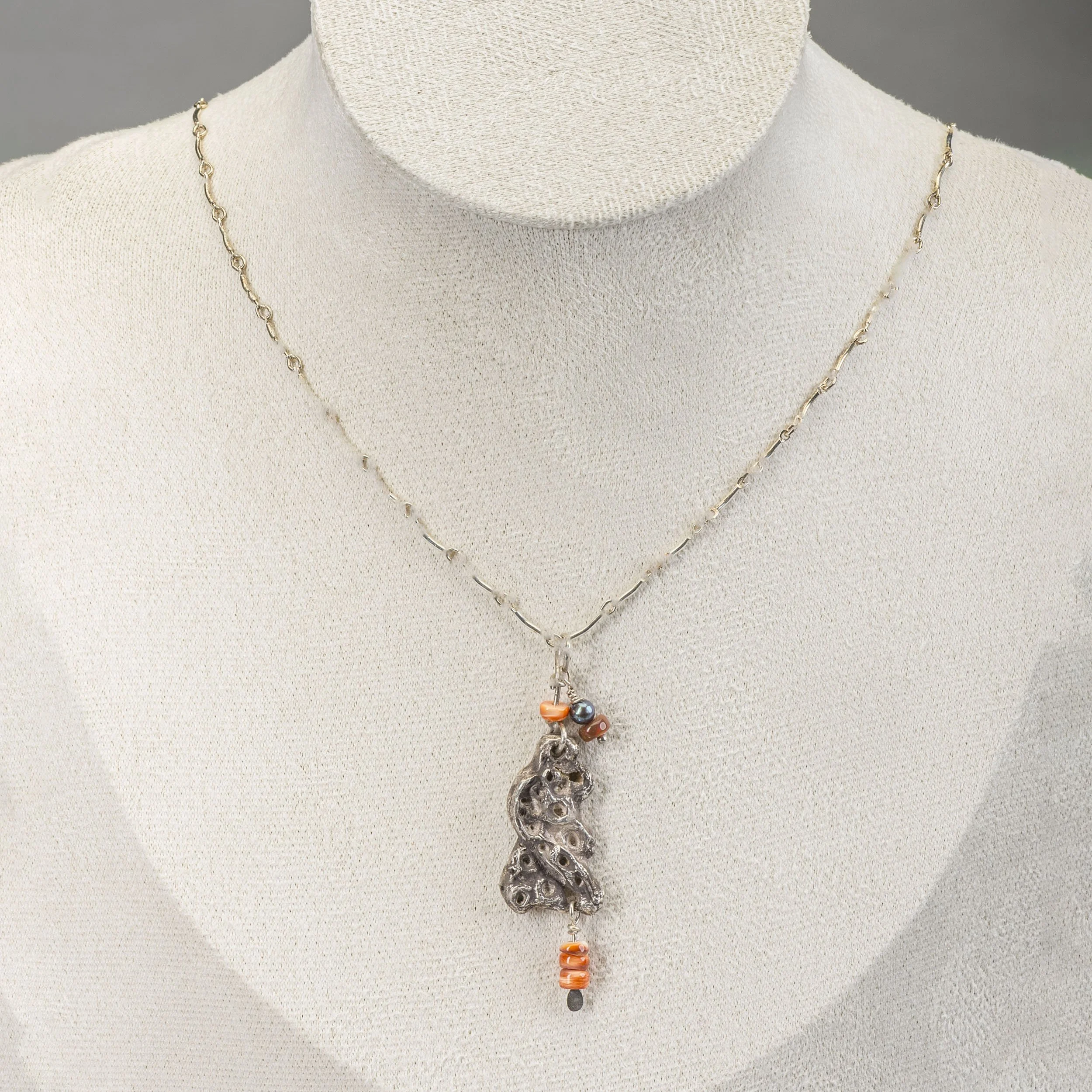 The Shop › Calm and Courage Image 1 of 1 Calm and Courage $125.00 A “coral” fine silver pendant with spiny shell oyster and smoked opal for calm and courage.21” chain2” pendant Add To Cart Added! A “coral” fine silver pendant with spiny shell oyster and smoked opal for calm and courage.21” chain2” pendant